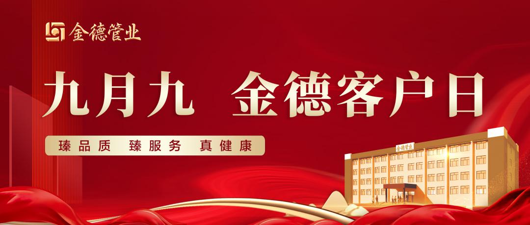 2023-10-02 金德管業(yè)集團 2668金德管業(yè)集團首屆“九月九客戶日”將于2023年9月9日與廣大客戶相約!本次活動,我們將帶來豐盛的福利回饋,提供高品質(zhì)客戶福利,搭建開放的互動橋梁,持續(xù)擦亮金德管業(yè)“瑧品質(zhì) 臻服務(wù) 真健康”品牌形象。